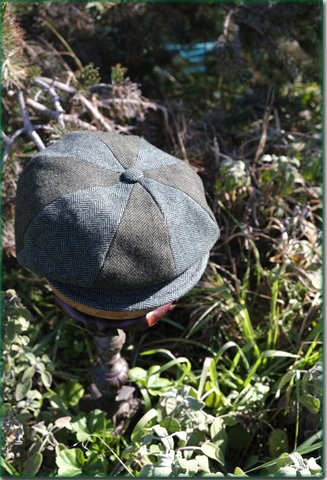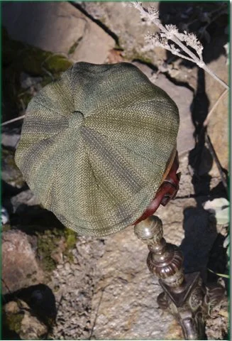 This unique flannel weight Dorr Wool Herringbones fades between a whole spectrum of greens on a vertical axis. If ordering this fabric as a Sports Cap, I recommend a lower band of narrow wale cotton corduroy in medium green.